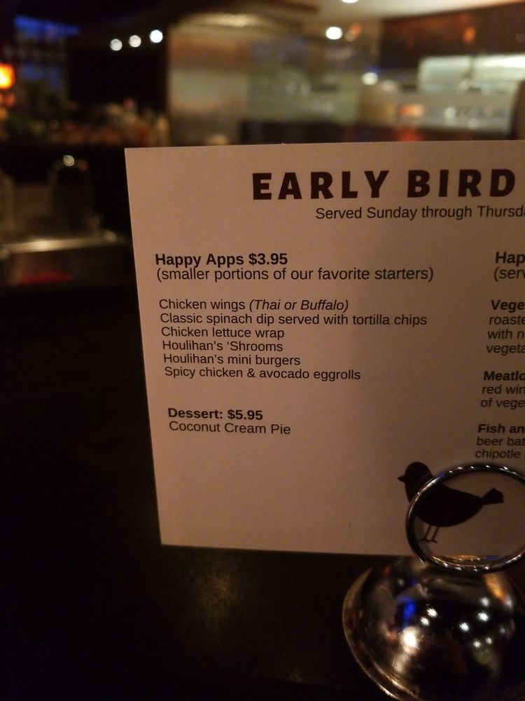 Welcome to Houlihan’s, a trendy and classy restaurant located at 1900 S 1st St in Champaign, IL. This restaurant offers a range of utilities including reservation options, delivery, takeout, and catering services. With a variety of vegetarian options available, Houlihan’s caters to all tastes and preferences. The restaurant is wheelchair accessible and provides amenities such as free Wi-Fi, a full bar, live music, and happy hours on select nights. Customers have praised the Roasted Tomato and Red Pepper Soup, SoCal Fish Tacos, and Truffle Tart on the menu. The atmosphere at Houlihan’s is praised for being classy and welcoming, with excellent service and delicious food. If you're looking for a spot with a great ambiance and delectable dishes, Houlihan’s is the place to be.